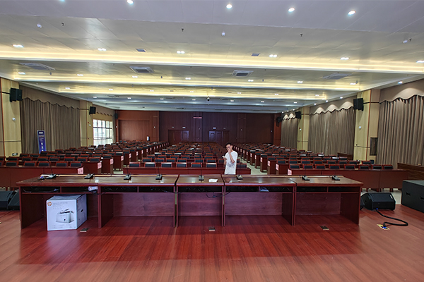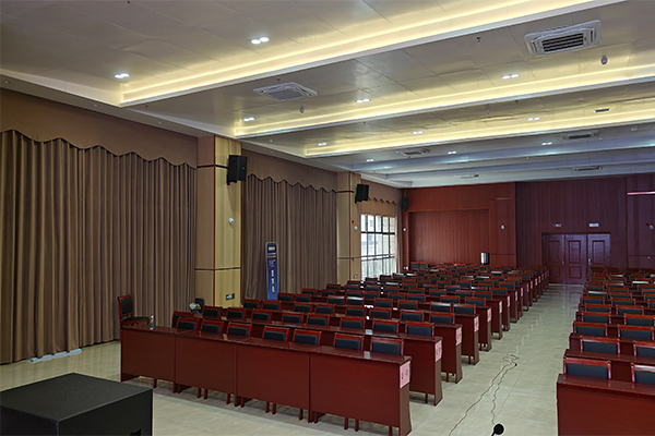 汝城人民医院报告厅应用的茄子短视频污音响专业扩声系列,配置了经久耐用、品质优良的扩声设备,保证整个会议室的每个角落的声场听觉均匀,没有出现失真、偏音、混音、回响等不良音响效果。